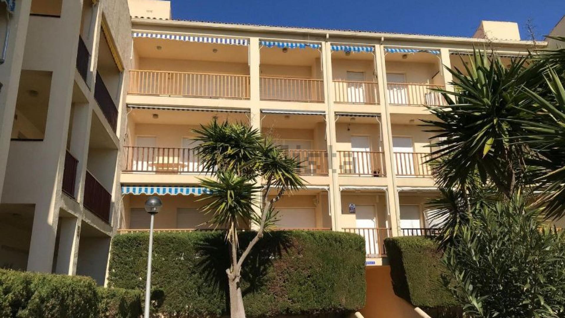 Innenhof der Wohnanlage, vorne gibt es eine Dusche für nach dem Strand