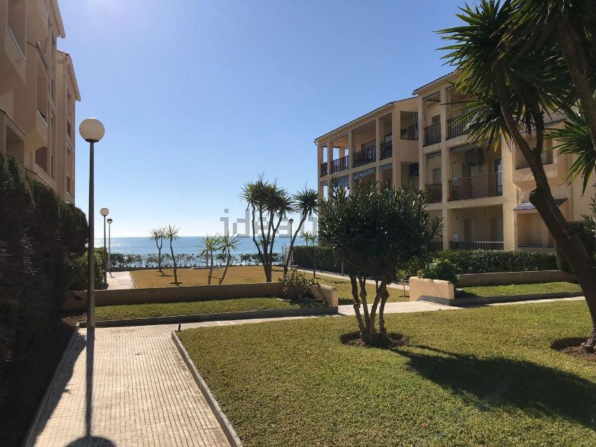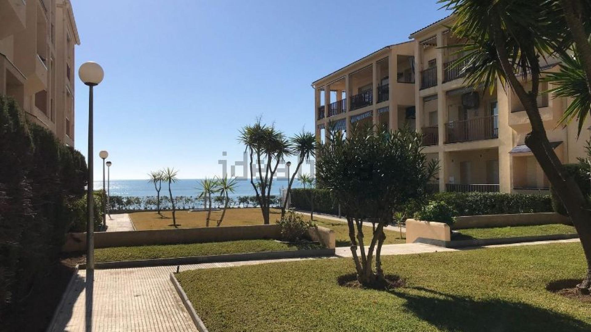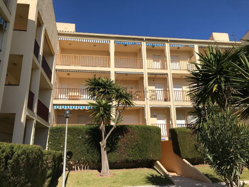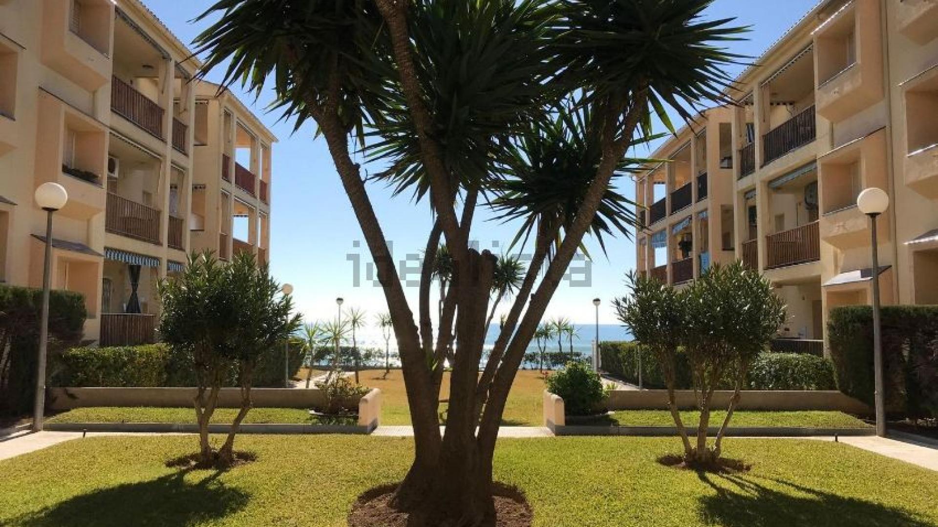 Innenhof der Wohnanlage, vorne gibt es eine Dusche für nach dem Strand